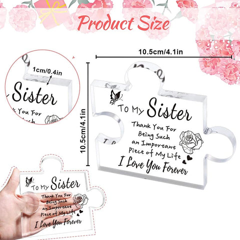 This puzzle acrylic plaque is specifically designed as a meaningful sister gift from sister brother, It embodies the love, support, and gratitude you have for your sister, making it an ideal choice for birthdays, sisterhood celebrations, or simply to express your love.